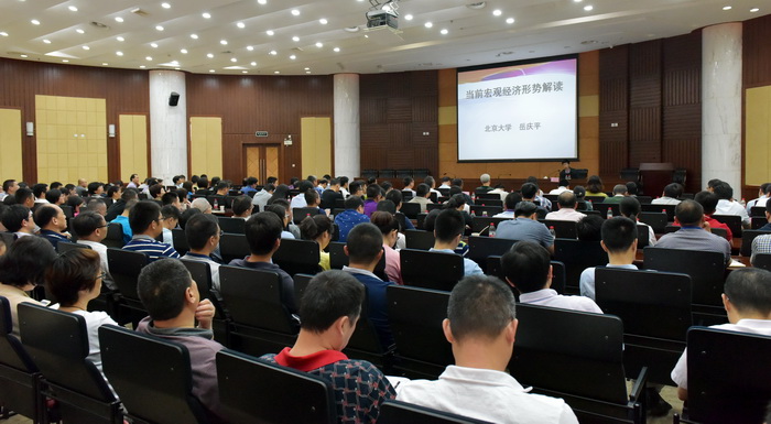 岳慶平通過一天的授課,深刻剖析了當(dāng)前國際復(fù)雜形勢和宏觀經(jīng)濟(jì)面臨的挑戰(zhàn),重溫了國內(nèi)系列重要會議精神,系統(tǒng)闡述了五大發(fā)展理念,探究經(jīng)濟(jì)如何保持平穩(wěn)發(fā)展。隨后,又系統(tǒng)講述了改革發(fā)展的六大機(jī)遇、創(chuàng)新驅(qū)動的六大思路和重點投資的六大領(lǐng)域,對當(dāng)前經(jīng)濟(jì)的十大熱點及供給側(cè)結(jié)構(gòu)性改革的五大任務(wù)做了精辟詮釋。