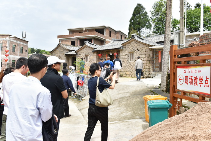 參訓人員先后參觀了軍營村村委會、防空哨所、柿子林和七彩池,重走習近平總書記當年訪貧問苦走過的路,感受習總書記求真務實的工作作風和深入基層、關(guān)心群眾冷暖的愛民情懷;在高山黨校,觀看了《守望高山致富路》的宣傳片,了解軍營村的建設(shè)發(fā)展歷程和“五位一體”發(fā)展成果,切實感受村莊幾十年來的發(fā)展變化。隨后,同安區(qū)發(fā)改局副局長范世高為黨員們做題為《十九大后發(fā)展新動能》的主題黨課,圍繞十九大報告要點、新發(fā)展理念解讀、建設(shè)現(xiàn)代化經(jīng)濟體系三個方面展開深刻論述,引導黨員全面準確把握黨的十九大提出的一系列新的重要思想、重要觀點、重大論斷、重大舉措,真正掌握新理論,切實把學習成果落實到企業(yè)改革發(fā)展的各方面。