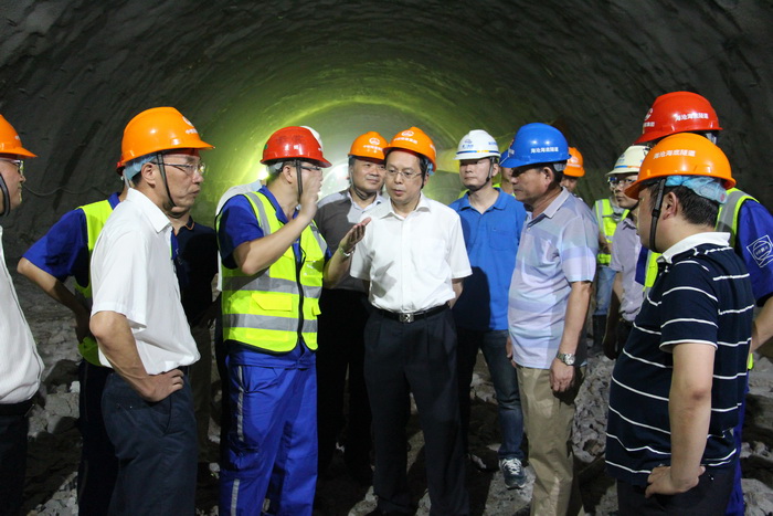 黃廳長一行深入海底隧道海域段掌子面一線作業(yè)現(xiàn)場,詳細(xì)詢問了隧道初期支護(hù)鋼拱架、錨桿施工、二襯鋼筋質(zhì)量控制及隧道超前地質(zhì)預(yù)報、監(jiān)控量測工作等情況,并從專業(yè)角度對海底隧道施工質(zhì)量安全管控提出了要求,黃廳長指出各參建單位要以黨的十九大精神為指引,振奮精神,提升工程品質(zhì),借鑒翔安隧道寶貴施工經(jīng)驗,突破難點,建設(shè)優(yōu)質(zhì)、精品、示范工程。