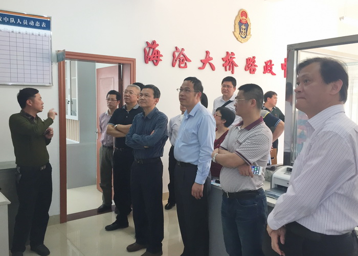 4月16日,廣東省交通運輸廳副廳長徐欣一行12人在福建省交通運輸廳副巡視員鄭仲蘋等人陪同下來到海滄大橋考察治超工作。