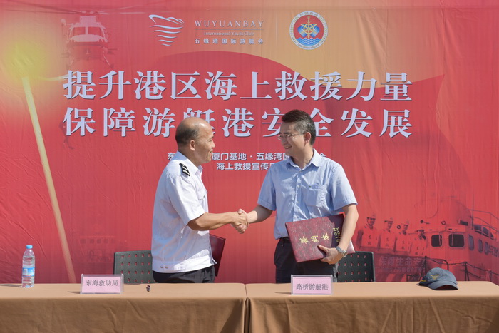 6月26日,路橋游艇港公司與東海救助局廈門基地在五緣灣游艇碼頭舉行海上安全聯(lián)合演練。東海救助局廈門基地主任蔡倫和路橋游艇港公司總經(jīng)理江志勇作為雙方代表,現(xiàn)場簽訂了《應(yīng)急保障服務(wù)合作備忘錄》。