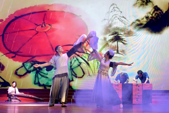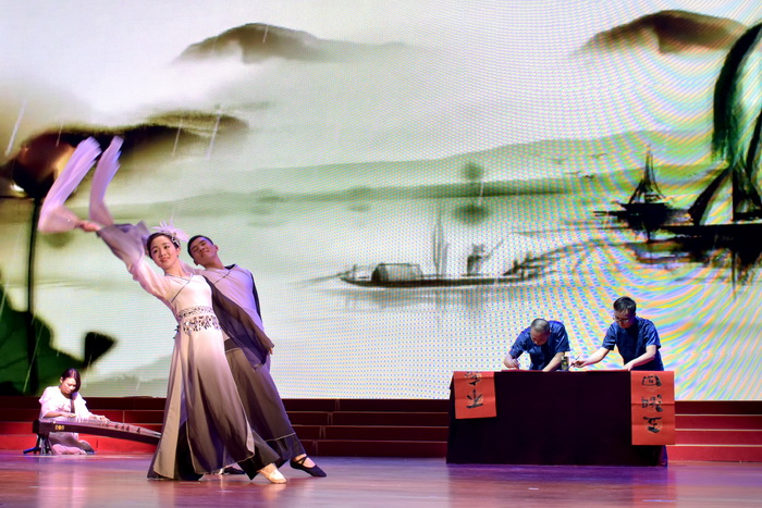 路橋工程、管理、物資三家公司聯(lián)袂演繹《韻》,古箏、書畫、驚鴻一舞,組成一幅獨(dú)具中國(guó)古典韻味的山水長(zhǎng)卷。