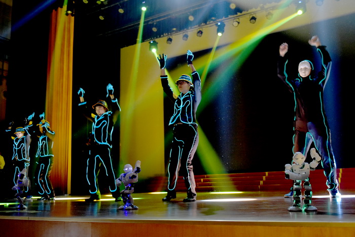廈門科技館創(chuàng)意舞蹈《光影時(shí)代》,熒光舞者與機(jī)器人同臺(tái)競(jìng)舞,奇妙炫酷;