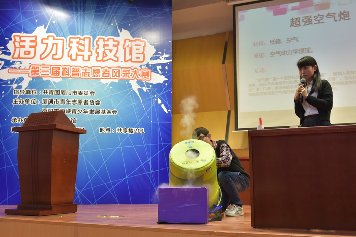 12月6日,由共青團廈門市委指導(dǎo),廈門市海峽青少年發(fā)展基金會與廈門市青年志愿者協(xié)會聯(lián)合主辦,廈門科技館承辦的“第三屆科普志愿者風采大賽”在廈門科技館舉行。“科普志愿者風采大賽”是廈門科技館發(fā)起的一項展示科普志愿者才華和風采的賽事,此前已經(jīng)舉辦兩屆,取得良好的宣傳效果和社會效應(yīng)。