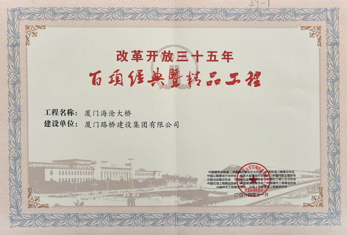 近日,我市主要進出島通道之一——海滄大橋榮膺“改革開放35年百項經(jīng)典暨精品工程”。是福建省唯一獲此殊榮的工程項目。