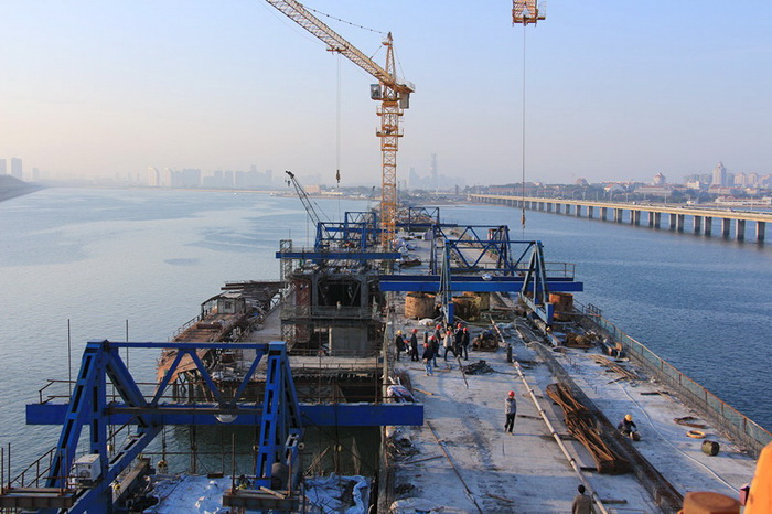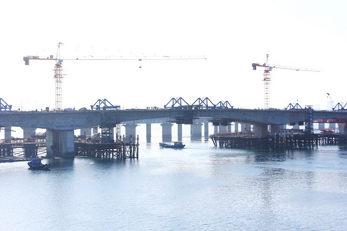 2014年12月30日,高集海堤開口改造工程公路橋橋梁掛籃施工最后一個節(jié)段混凝土澆筑完成,宣告主橋順利合龍!