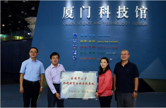 近日,由國(guó)家環(huán)保部、教育部聯(lián)合開(kāi)展的“全國(guó)首批中小學(xué)環(huán)境教育社會(huì)實(shí)踐基地”評(píng)選活動(dòng)結(jié)果名單公布,路橋集團(tuán)旗下企業(yè)廈門(mén)科技館榜上有名。11月5日下午,“全國(guó)中小學(xué)環(huán)境教育社會(huì)實(shí)踐基地”授牌儀式在廈門(mén)科技館舉行,廈門(mén)市環(huán)境保護(hù)局黨組成員、機(jī)關(guān)黨委書(shū)記、紀(jì)檢組長(zhǎng)師強(qiáng)代國(guó)家環(huán)保部和教育部將牌匾授予廈門(mén)科技館,郁紅萍館長(zhǎng)接住了這一沉甸甸的“國(guó)字號(hào)”牌匾。