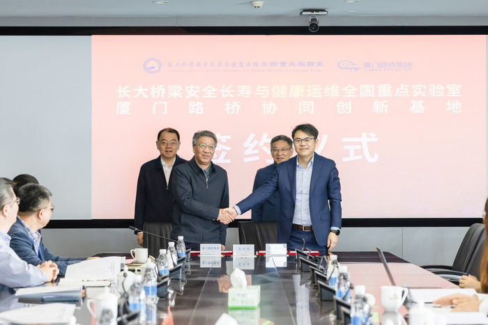 2026年1月8日,長(zhǎng)大橋梁安全長(zhǎng)壽與健康運(yùn)維全國(guó)重點(diǎn)實(shí)驗(yàn)室(以下簡(jiǎn)稱長(zhǎng)大橋國(guó)重)廈門路橋協(xié)同創(chuàng)新基地簽約暨揭牌儀式在廈門路橋建設(shè)集團(tuán)有限公司(以下簡(jiǎn)稱路橋集團(tuán))舉行。中國(guó)工程院院士、長(zhǎng)大橋國(guó)重主任張喜剛,路橋集團(tuán)黨委書記、董事長(zhǎng)吳燦東,路橋集團(tuán)黨委委員、副董事長(zhǎng)李少波,長(zhǎng)大橋國(guó)重副主任楊揚(yáng),以及相關(guān)權(quán)屬企業(yè)與合作單位代表出席活動(dòng)。